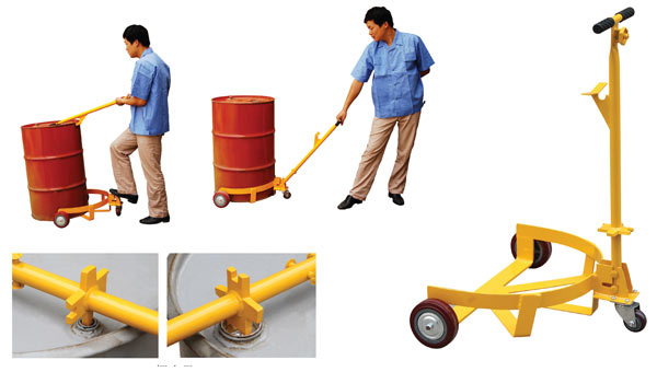 ● 手柄用做杠桿,支起油桶,推入小車即可移動(dòng)油桶